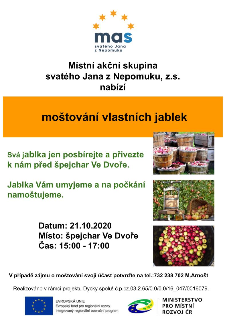 Nabízíme moštování vlastních jablek! Svá jablka jen posbírejte a přivezte ve středu 21.10.2020 od 15 hodin před špejchar Ve dvoře. Jablka vám na počkání zmoštujeme.
